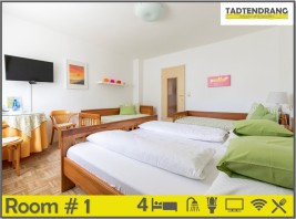 Unser Gästehaus befindet sich in ruhiger Lage im Zentrum von Tadten und bietet Zimmer in zwei Etagen. Ein großer Garten mit Sitz- und Liegeeinrichtungen steht zu Ihrer Verfügung. Jedes Zimmer ist ausgestattet mit Dusche, WC und Fernseher. Freies WLAN können Sie im Aufenthaltsraum nutzen. Das Frühstück ist reichhaltig und wir servieren Ihnen regionale Spezialitäten. Nach einem ereignisreichen Urlaubstag können Sie bei uns in der Gartenlaube ausruhen und Weine der Region genießen. Komfortable Parkmöglichkeit vor dem Haus, sowie Fahrradeinstellplätze im versperrbaren Radlschuppen stehen zur Verfügung.